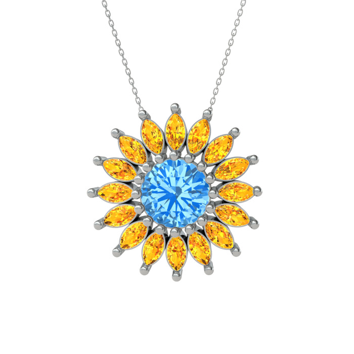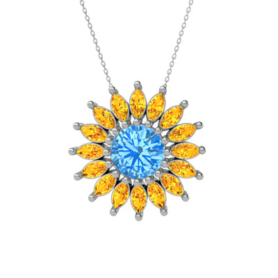 Akuamarin ve sitrin 925 ayar gümüş kolye (40 cm gümüş rolo zincir)