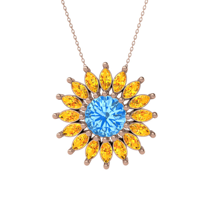 Akuamarin ve sitrin 925 ayar rose altın kaplama gümüş kolye (40 cm rose altın rolo zincir)