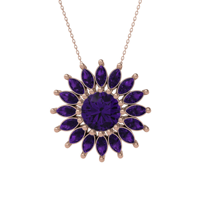Ametist 18 ayar rose altın kolye (40 cm rose altın rolo zincir)