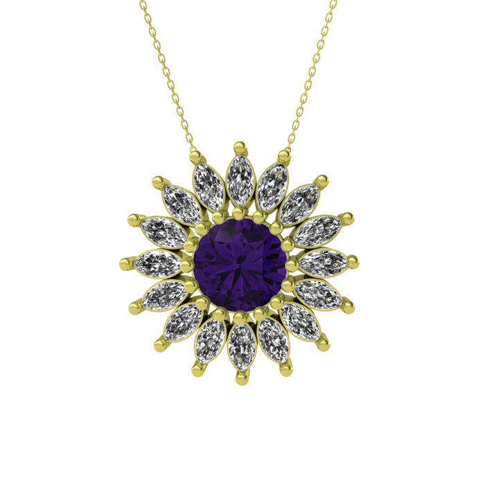 Ametist ve beyaz zirkon 8 ayar altın kolye (40 cm altın rolo zincir)