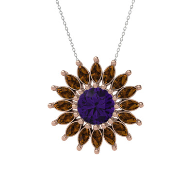 Ametist ve dumanlı kuvars 925 ayar rose altın kaplama gümüş kolye (40 cm beyaz altın rolo zincir)
