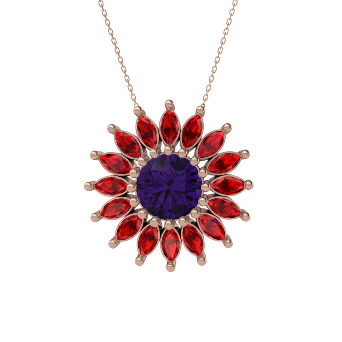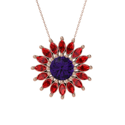 Ametist ve garnet 925 ayar rose altın kaplama gümüş kolye (40 cm rose altın rolo zincir)