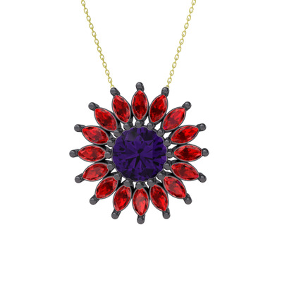 Ametist ve garnet 925 ayar siyah rodyum kaplama gümüş kolye (40 cm gümüş rolo zincir)