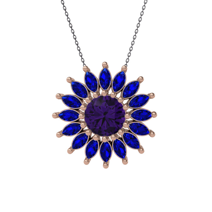 Ametist ve lab safir 8 ayar rose altın kolye (40 cm gümüş rolo zincir)