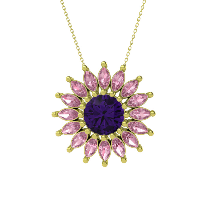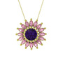 Ametist ve pembe kuvars 18 ayar altın kolye (40 cm altın rolo zincir)