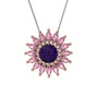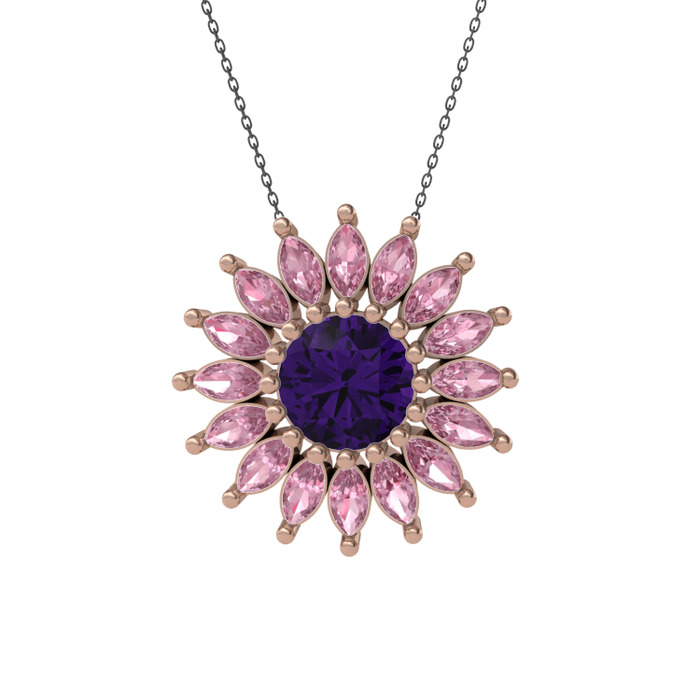 Ametist ve pembe kuvars 925 ayar rose altın kaplama gümüş kolye (40 cm gümüş rolo zincir)