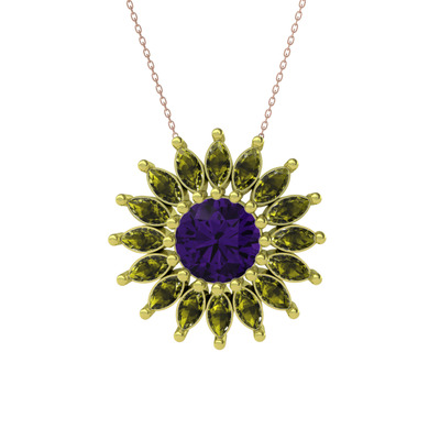 Ametist ve peridot 14 ayar altın kolye (40 cm rose altın rolo zincir)