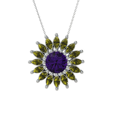 Ametist ve peridot 14 ayar beyaz altın kolye (40 cm beyaz altın rolo zincir)