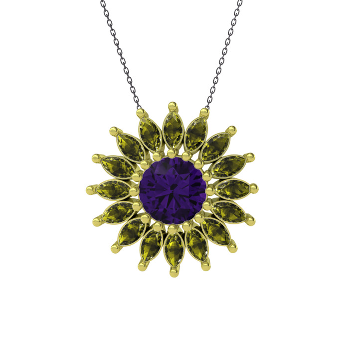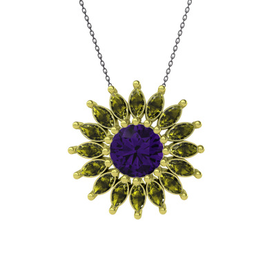 Ametist ve peridot 18 ayar altın kolye (40 cm gümüş rolo zincir)