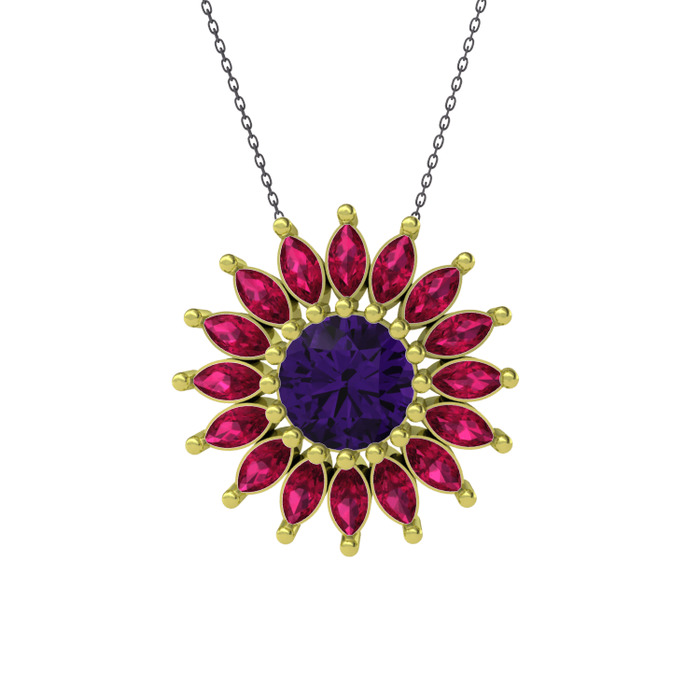 Ametist ve rodolit garnet 18 ayar altın kolye (40 cm gümüş rolo zincir)