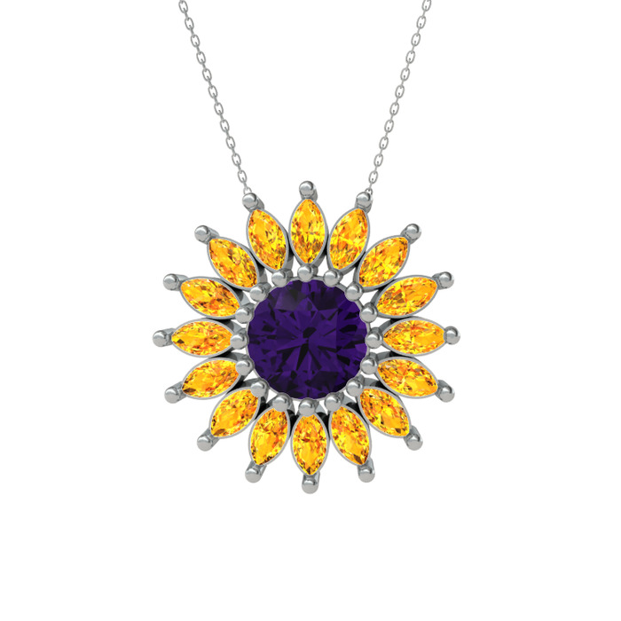 Ametist ve sitrin 14 ayar beyaz altın kolye (40 cm beyaz altın rolo zincir)