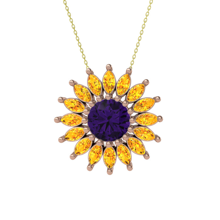 Ametist ve sitrin 925 ayar rose altın kaplama gümüş kolye (40 cm altın rolo zincir)