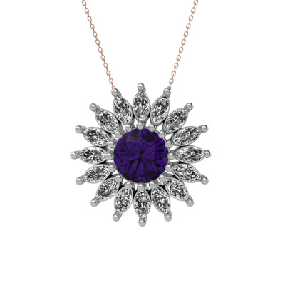 Ametist ve swarovski 14 ayar beyaz altın kolye (40 cm rose altın rolo zincir)