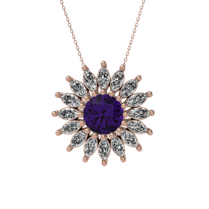 Ametist ve swarovski 18 ayar rose altın kolye (40 cm rose altın rolo zincir)