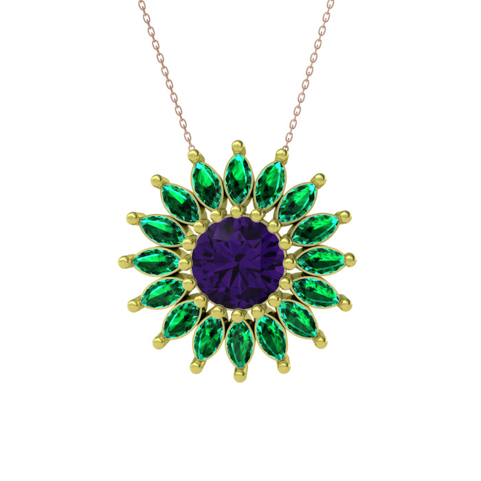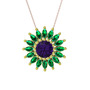 Ametist ve yeşil kuvars 14 ayar altın kolye (40 cm rose altın rolo zincir)