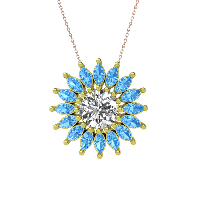 Beyaz zirkon ve akuamarin 925 ayar altın kaplama gümüş kolye (40 cm rose altın rolo zincir)