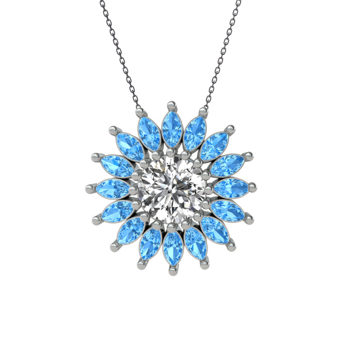 Beyaz zirkon ve akuamarin 925 ayar gümüş kolye (40 cm gümüş rolo zincir)