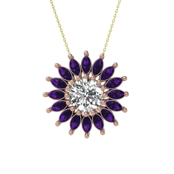 Beyaz zirkon ve ametist 925 ayar rose altın kaplama gümüş kolye (40 cm altın rolo zincir)