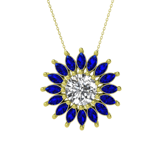 Beyaz zirkon ve lab safir 8 ayar altın kolye (40 cm altın rolo zincir)