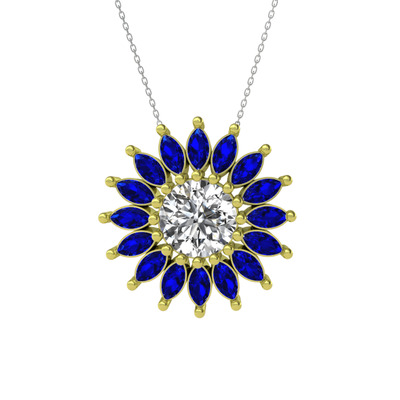 Beyaz zirkon ve lab safir 8 ayar altın kolye (40 cm beyaz altın rolo zincir)