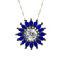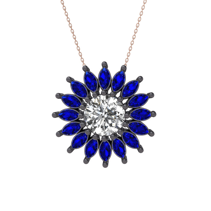 Beyaz zirkon ve lab safir 925 ayar siyah rodyum kaplama gümüş kolye (40 cm rose altın rolo zincir)
