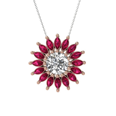 Beyaz zirkon ve rodolit garnet 14 ayar rose altın kolye (40 cm gümüş rolo zincir)