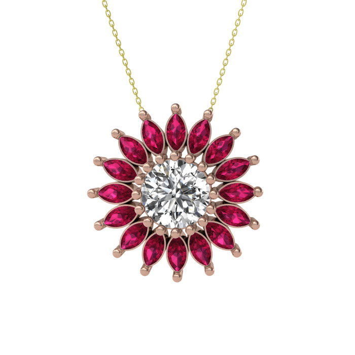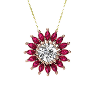 Beyaz zirkon ve rodolit garnet 18 ayar rose altın kolye (40 cm gümüş rolo zincir)