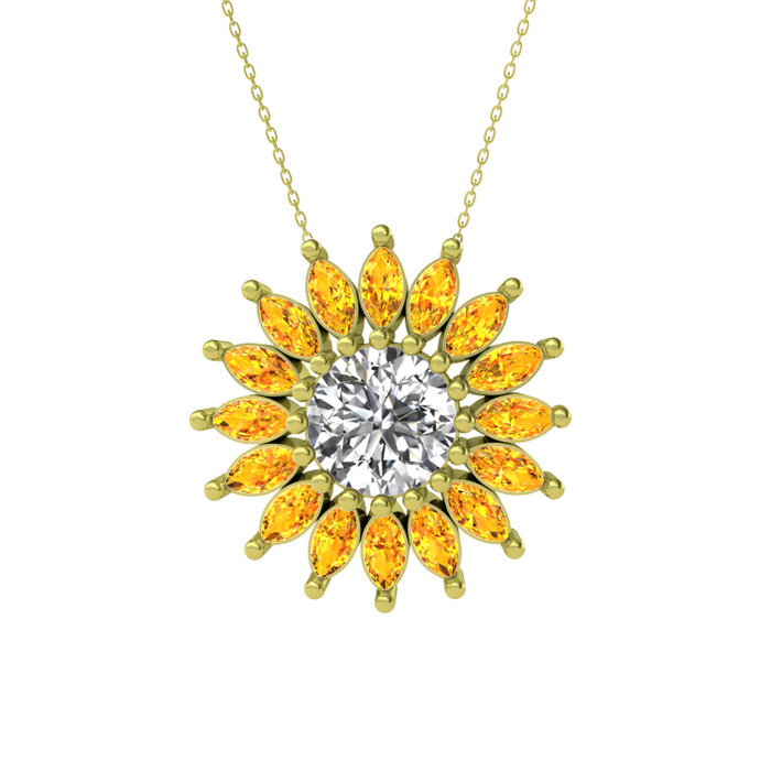 Beyaz zirkon ve sitrin 8 ayar altın kolye (40 cm altın rolo zincir)