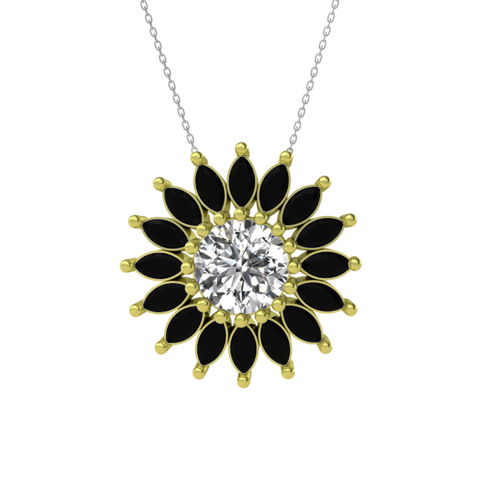 Beyaz zirkon ve siyah zirkon 8 ayar altın kolye (40 cm beyaz altın rolo zincir)
