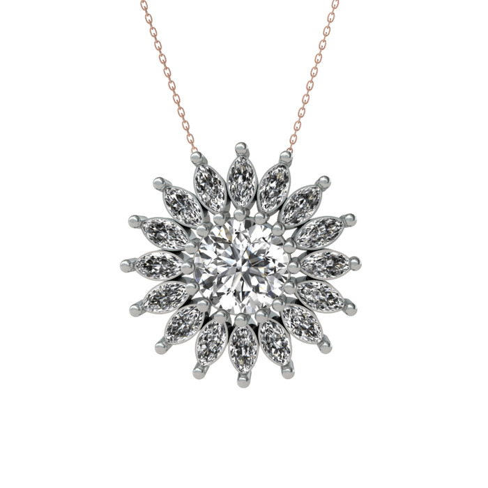 Beyaz zirkon ve swarovski 925 ayar gümüş kolye (40 cm rose altın rolo zincir)