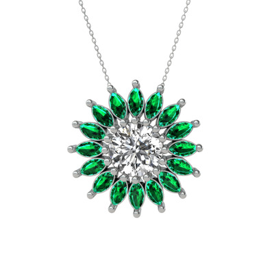 Beyaz zirkon ve yeşil kuvars 8 ayar beyaz altın kolye (40 cm beyaz altın rolo zincir)