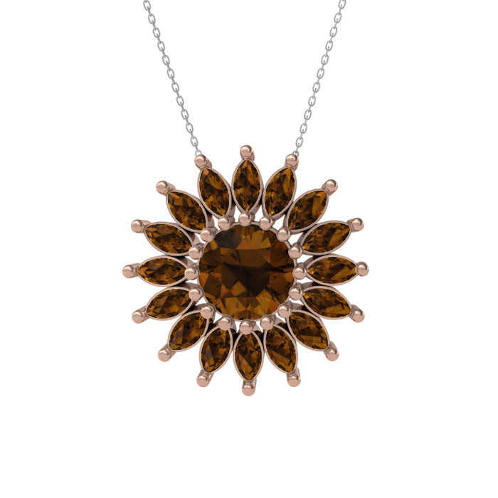 Dumanlı kuvars 14 ayar rose altın kolye (40 cm gümüş rolo zincir)
