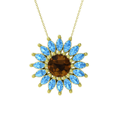 Dumanlı kuvars ve akuamarin 18 ayar altın kolye (40 cm altın rolo zincir)