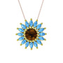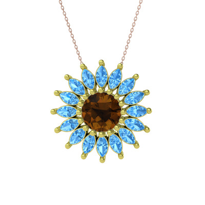 Dumanlı kuvars ve akuamarin 925 ayar altın kaplama gümüş kolye (40 cm rose altın rolo zincir)