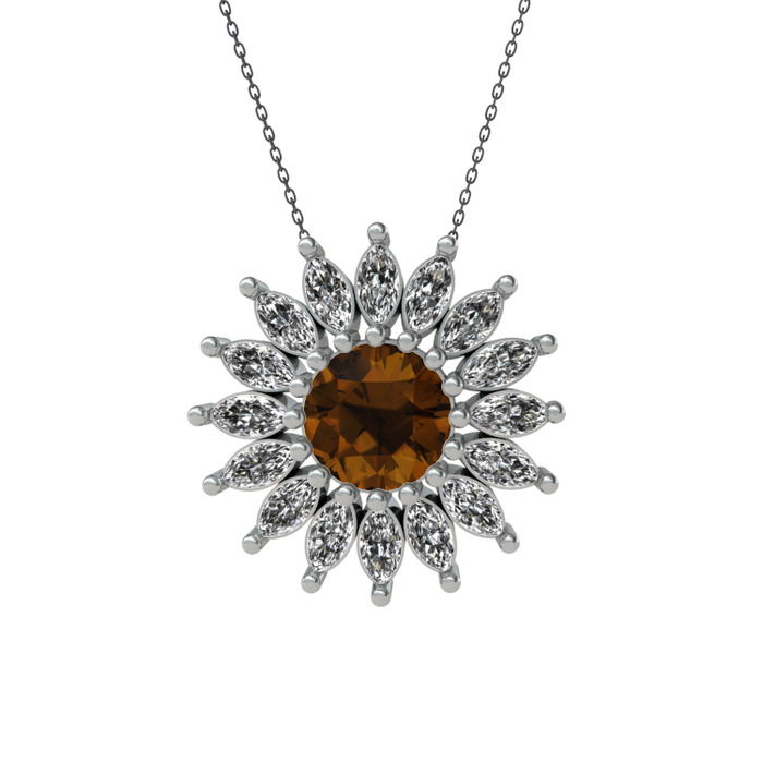 Dumanlı kuvars ve beyaz zirkon 925 ayar gümüş kolye (40 cm gümüş rolo zincir)