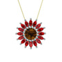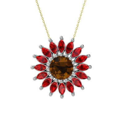 Dumanlı kuvars ve garnet 8 ayar beyaz altın kolye (40 cm gümüş rolo zincir)