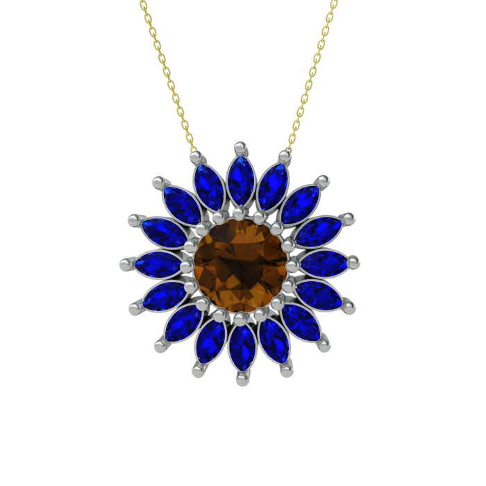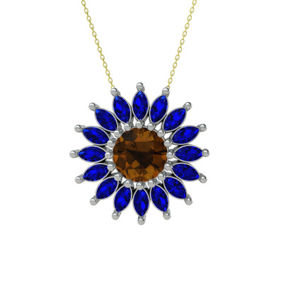 Dumanlı kuvars ve lab safir 18 ayar beyaz altın kolye (40 cm gümüş rolo zincir)