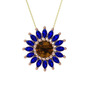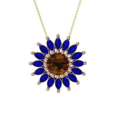 Dumanlı kuvars ve lab safir 925 ayar rose altın kaplama gümüş kolye (40 cm altın rolo zincir)