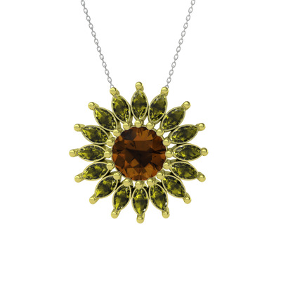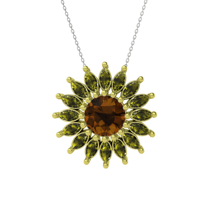Dumanlı kuvars ve peridot 18 ayar altın kolye (40 cm beyaz altın rolo zincir)