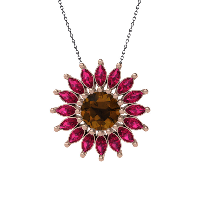 Dumanlı kuvars ve rodolit garnet 14 ayar rose altın kolye (40 cm gümüş rolo zincir)
