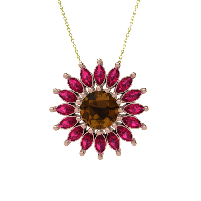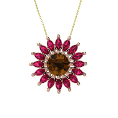 Dumanlı kuvars ve rodolit garnet 18 ayar rose altın kolye (40 cm gümüş rolo zincir)