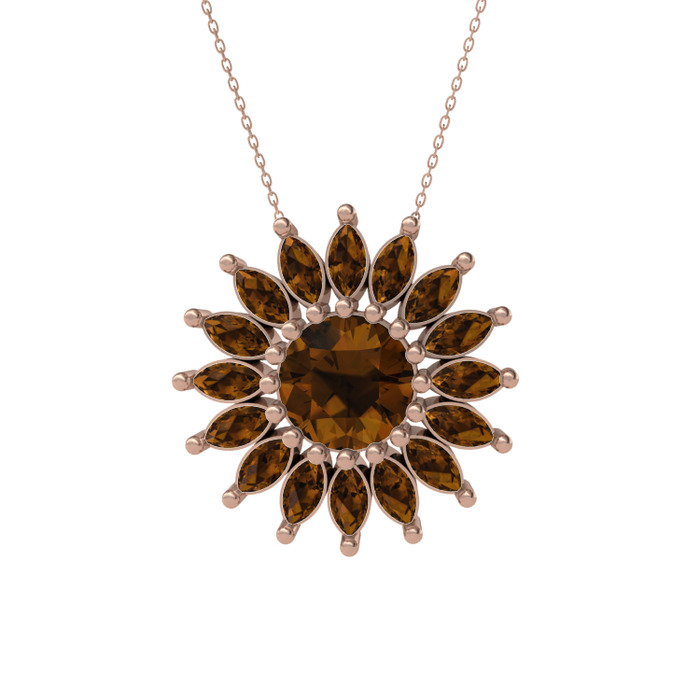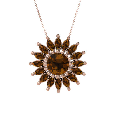 Dumanlı kuvars 925 ayar rose altın kaplama gümüş kolye (40 cm rose altın rolo zincir)