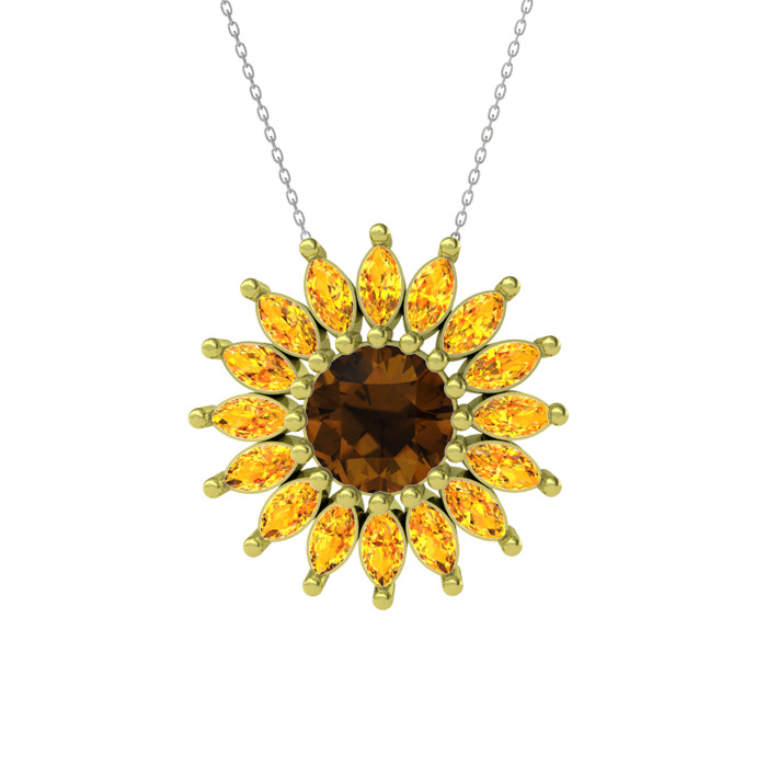 Dumanlı kuvars ve sitrin 925 ayar altın kaplama gümüş kolye (40 cm beyaz altın rolo zincir)