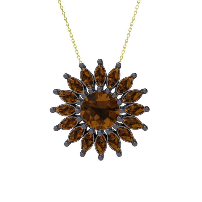Dumanlı kuvars 925 ayar siyah rodyum kaplama gümüş kolye (40 cm gümüş rolo zincir)