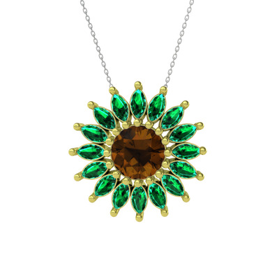 Dumanlı kuvars ve yeşil kuvars 18 ayar altın kolye (40 cm gümüş rolo zincir)