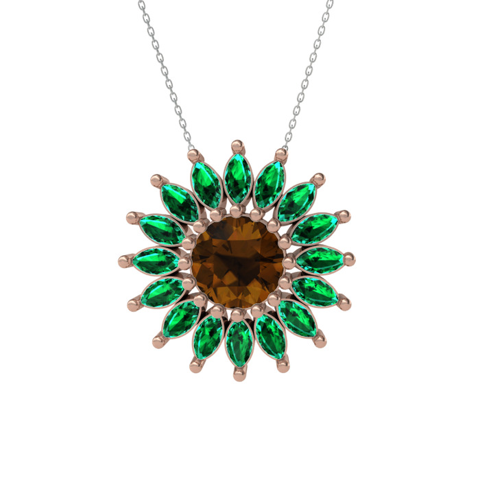 Dumanlı kuvars ve yeşil kuvars 8 ayar rose altın kolye (40 cm beyaz altın rolo zincir)