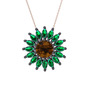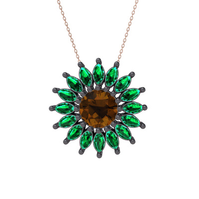 Dumanlı kuvars ve yeşil kuvars 925 ayar siyah rodyum kaplama gümüş kolye (40 cm rose altın rolo zincir)