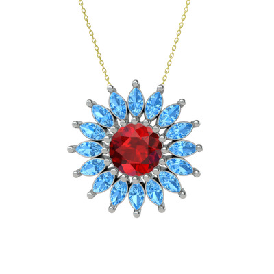 Garnet ve akuamarin 8 ayar beyaz altın kolye (40 cm altın rolo zincir)