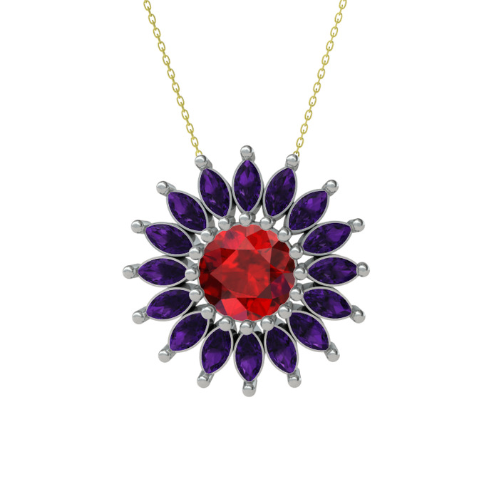 Garnet ve ametist 925 ayar gümüş kolye (40 cm gümüş rolo zincir)