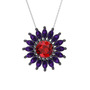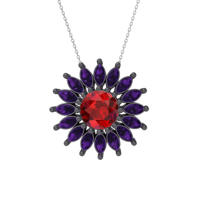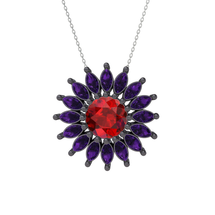 Garnet ve ametist 925 ayar siyah rodyum kaplama gümüş kolye (40 cm beyaz altın rolo zincir)